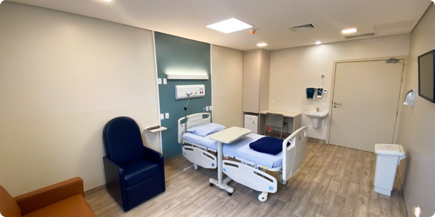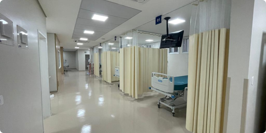 2024 Reforma do Centro Cirúrgico Adequação EDA, preparação para acreditação ONA, congelação in loco, funcionando e operante de recuperação pós-anestésica, além da expansão da hotelaria. Atualmente, são 6.600m² de área construída, para oferecer atendimento íntegro, seguro e eficiente aos nossos pacientes.